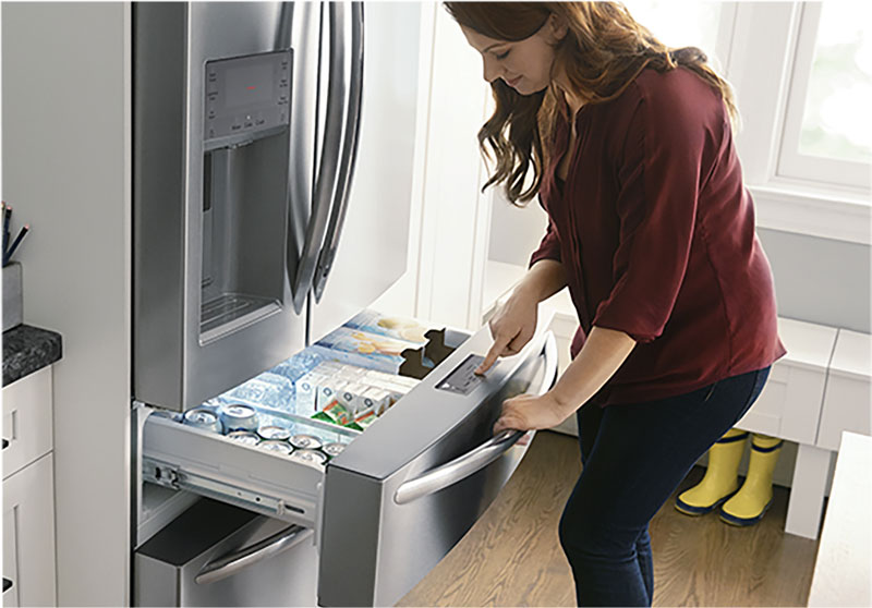 The Custom-Flex® Temp Drawer allows you to store cold or frozen favorites with a temperature range from -6 to 45˚!